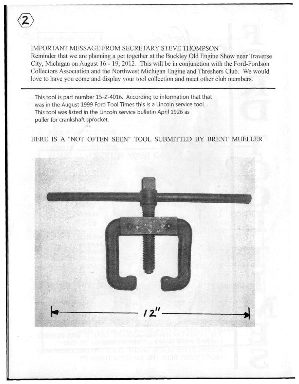 Crankshaft sprocket puller, later than T, found in listings on Ford tool collectors website.