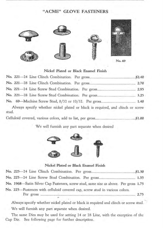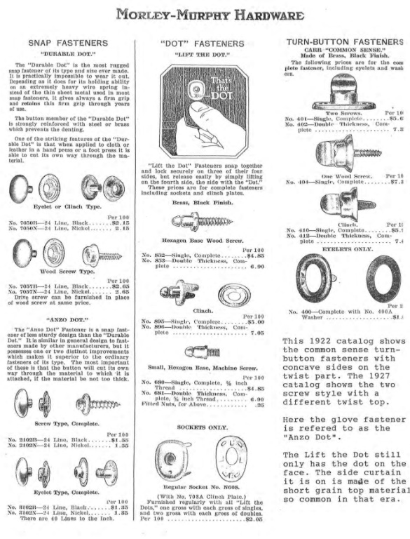 Oh and the "glove fasteners" are Anzo fasteners. They are the predecessor to what we call today a "snap".
