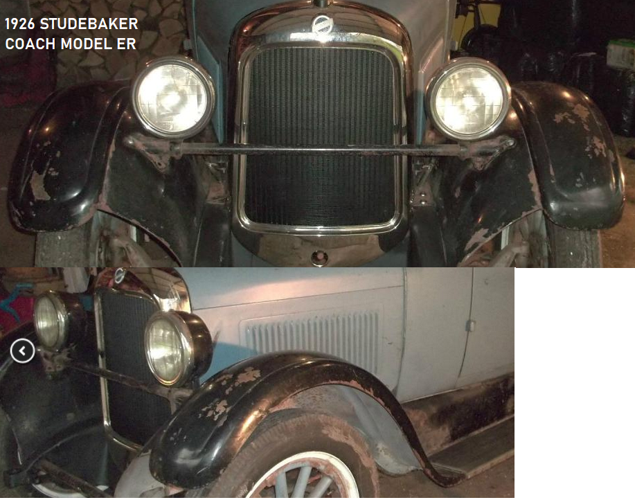 I think Dan H is right! Years ago, I had a 1925/'26 Studebaker standard model, and the front fenders looked very much like that. You may need to check years and models a bit more? They may also fit 1927. I don't know about the other models.