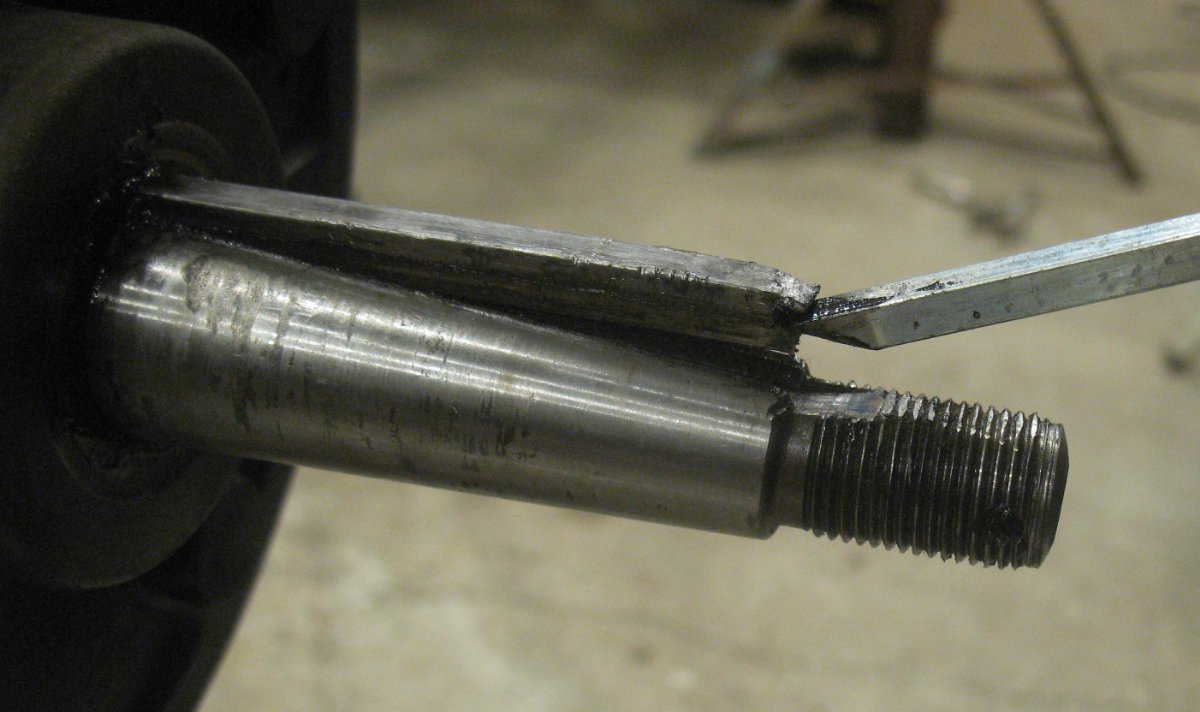 Just a trick to keep a well fitting but loose key from moving-1) upset a slight "ding" on one edge of the key to hold it in place in the axle. 2) a drop of super glue will hold the key in position also.