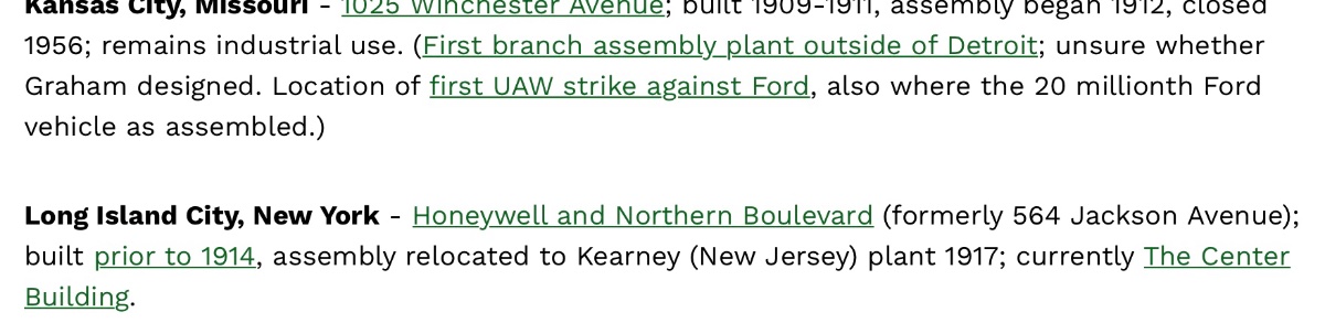 And technically the engines for the 1914 style cars produced by Ford Motor Company for the Centennial were not produced at the Highland Park nor the River Rouge.....