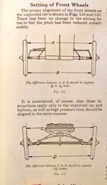 Yes. And, the toe-in should be about 3/16" - 1/4". Some people misinterpret the diagram, showing the camber setting, in the Ford manual as being for the toe-in setting. They then try get a 3" toe-in! A guy in our local chapter did that and used up 2 brand new tires in one tour!Alan Long wrote: ↑Sun Aug 08, 2021 7:56 amYep, agree you need to lengthen the rod so the difference is shorter at the front compared to the back by 1/4” or as close