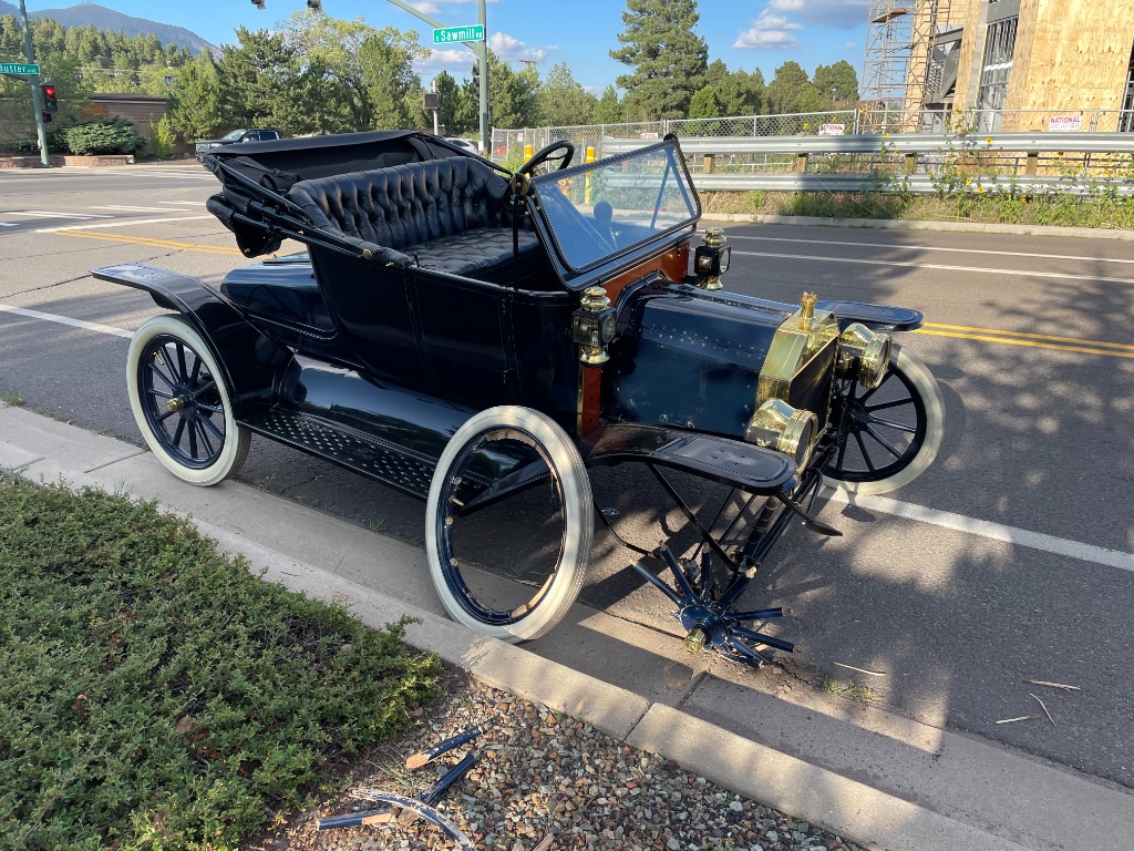 I was driving a new to the family Model T today and the right front wheel collapsed while making a left turn in a busy intersection . Thankfully no one was hurt and the car was not damaged. The wheels appear to be originals that had been “restored”. This incident could have been much much worse! Make sure you are checking your wheels or better yet have them rewooded by someone that knows what they are doing. I have used Stutzmans Wheel Shop and am extremely pleased with there products. Be safe out there![image][/image]