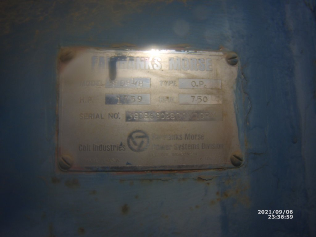 Those big Fairbanks Morse multi-cylinder engines were often used for municipal power plants. They could be had as upright, single cylinders, or 2, 3, 4, 5, or 6 cylinders units. Being 2 cycle, any reasonable number of cylinders could be specified. They could run for decades. They were also used to power factories, mills, gins, and so forth. I've seen them set up to run on natural gas, and they may have had a version that burned fuel oil. Older units would have had brass tags and no mention of Colt Industries. Wikipedia may have a write up on Fairbanks Morse which might reveal the date of the Colt Industries association.