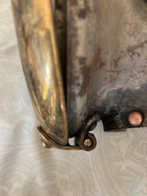 Hi, this 1915 rear lamp door probably isn't original and doesn't close all the way without forcing it then it pops right back open. I think the tang on the hinge isn't long enough. The brass door itself seems to be the right size. It also does not have a clasp at the top. Suggestions on how to get this to work are much appreciated.