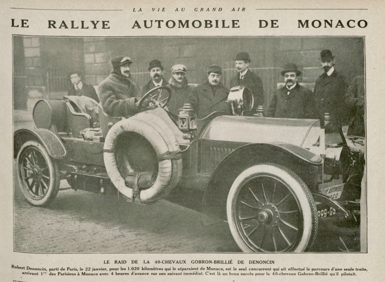Robert Denoncin, who left Paris on January 22, for the 1,020 kilometers that separated him from Monaco, is the only competitor who made the course in one go, arriving 1st of the Parisians in Monaco 4 hours in advance on his next immediate. This is a great success for the 40-horse Gobron-Brillié he was driving.