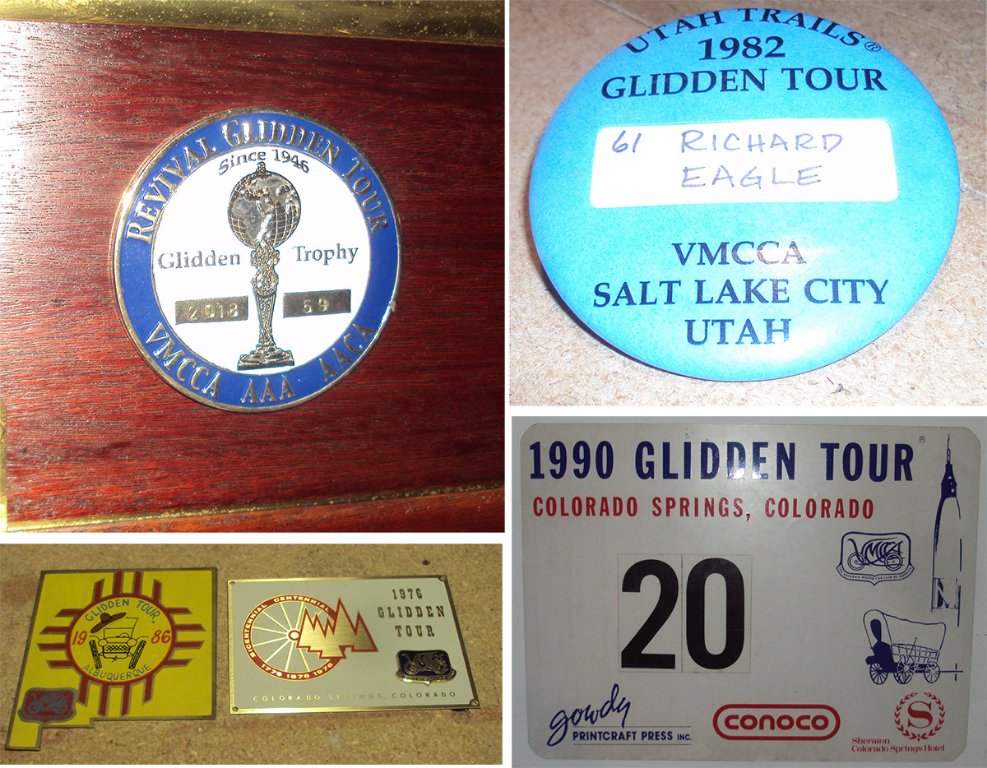 We drove our "1909" T Touring car and received the cloisonné car badge, upper left, and one for recognition of a 100 year old car completing an AACA tour. The '86 and '76 tour plaques belonged to our friend Russ Heath.