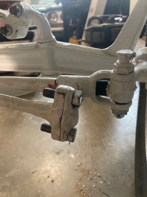 The spindle arm end looks a bit worn causing the gap. Don't know if an acceptable fix is a thrust washer (not a regular washer)