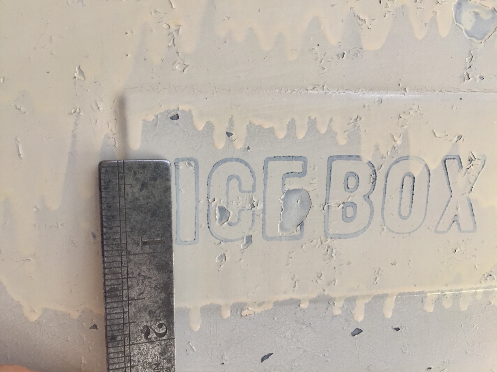 “ICE BOX” Seems to be written and 1 inch lettering.