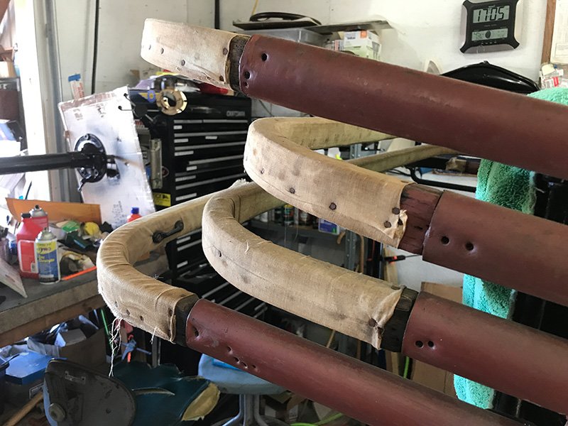I have yet to try to install a top on my 1917 touring. There are plenty of other things that need to be done first. My question is this... I've been told that the wood portion is normally wrapped in black fabric, but mine are wrapped in white. The fabric looks really old telling me it's been on the car a long time...maybe original.