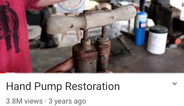 I had seen the You Tube video before I posted, but I questioned the red color of the top casting of the restored You Tube video pump, as I see no trace of red paint on the top casting of my pump. Russ Furstnow confirms my suspicion that the top casting was not originally painted red, as in the You Tube video. Thanks to all who responded.