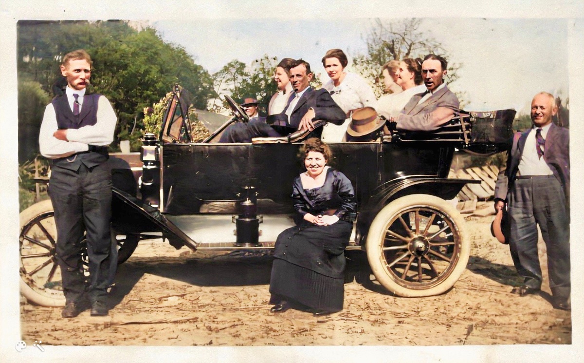 Another 1914, definitely right hand drive. Happy Canadians ?? Or elsewhere ?? Nice smiles !