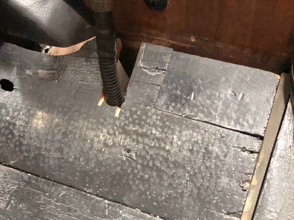 The floor boards show much damage & many repairs. Someone had thought of using patch panels before I did! I ran the toe board through the table saw to cut a channel for the speedo cable and got a bit enthusiastic with the saw but nothing that can't be patched up with putty and another patch panel.