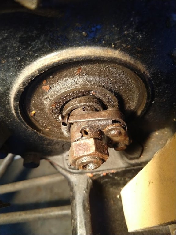Thanks Guys. I see the pin and cupped washer. I'll order it. I have timer covers that have rubber tabs that are on the outside for oiling purposes (?)