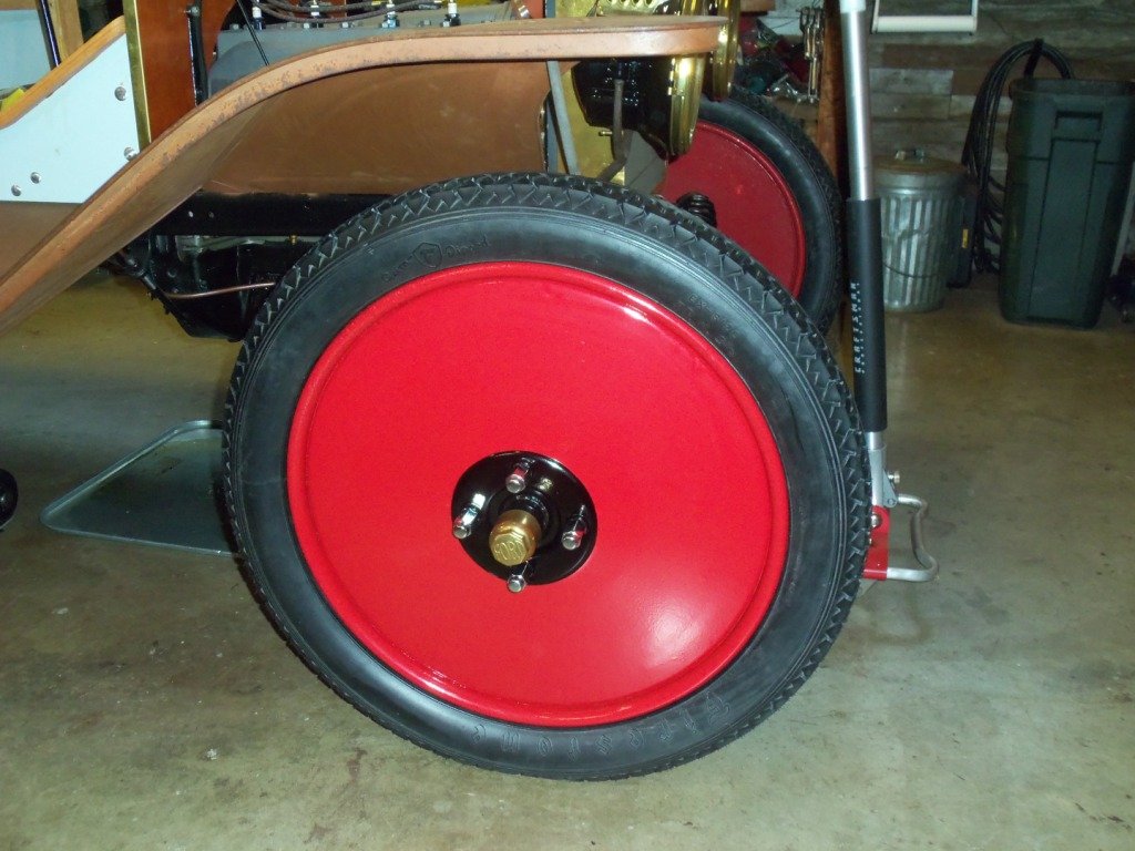 Quite sure those are Michelin Disc - non-demountable, bolt on w/RH & LH threaded nuts - notice the absence of an inner tube stem - only disc wheels I've seen where the stem is in the backside - I have a restored set on my wife's F.C.'s car.