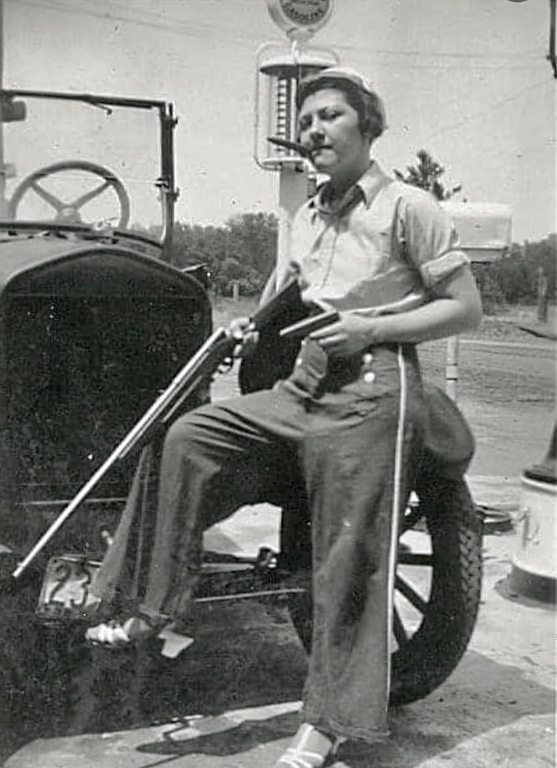 So... Bonnie Parker ran a gas station? Nah.. she just stopped in to get some gas, a pack of Lucky Strike cigarettes, and some Toms' peanut butter & cheese crackers... on her way to the bank.