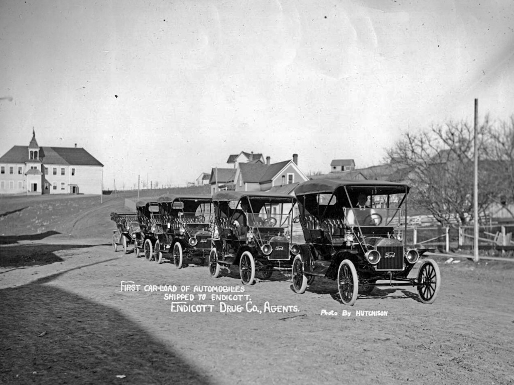Here is another scene from Endicott, Washington. Same group of cars. They look like 1910 and some still have the agency tag attached.