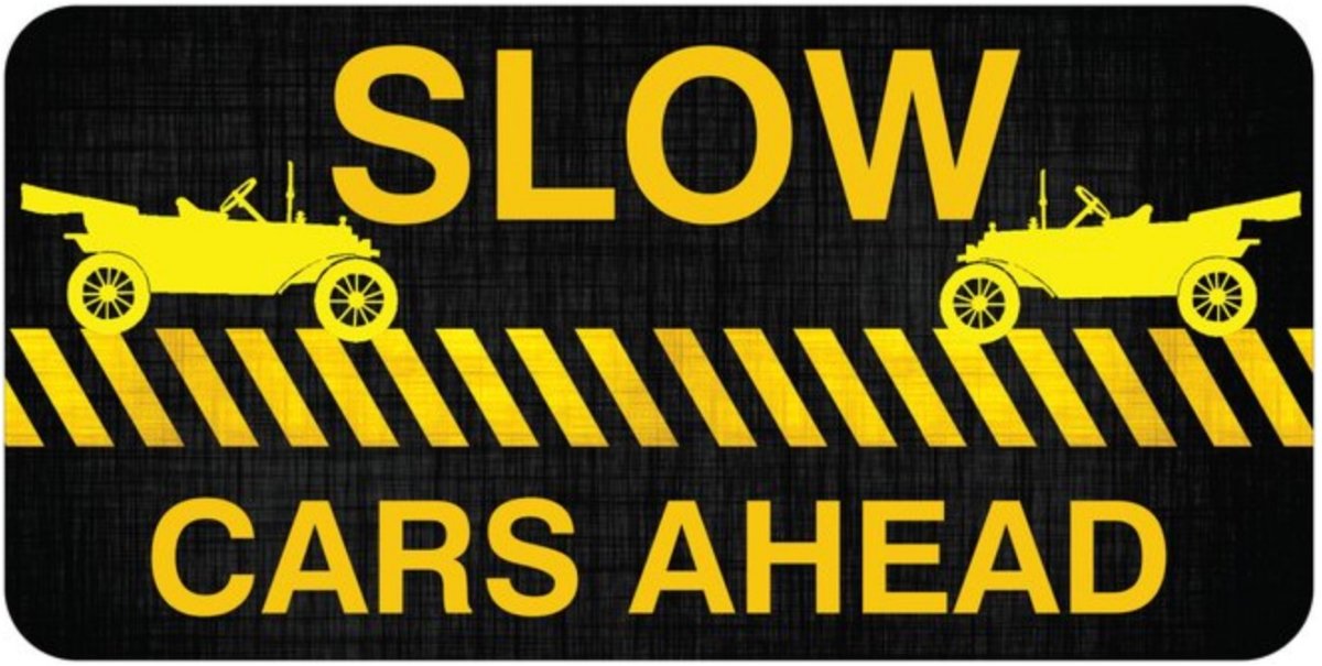 I had never realized that slow moving vehicle signs were illegal on other than farm equipment. I like the sticker I saw on the back of at least one Model T at the Michigan Jamboree that says “THIS CAR HAS TWO SPEEDS. YOU WON’T LIKE THE OTHER ONE EITHER”.