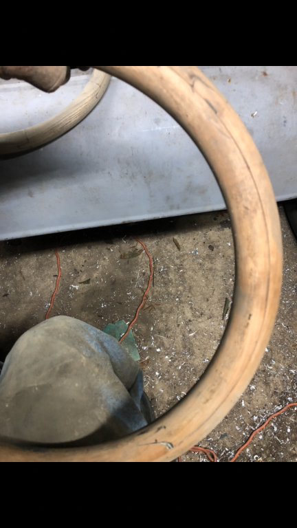It seems like I read before that the original steering wheels were one piece of wood with one finger joint. I sanded the old paint from this one and it is a single finger joint but on 2 pieces of wood, an inner and an outer. I’ve seen wheel rims advertised as “2 piece”. I pictured 2 halves put together, not 2 one piece rings glued together. Is this how they all were made?