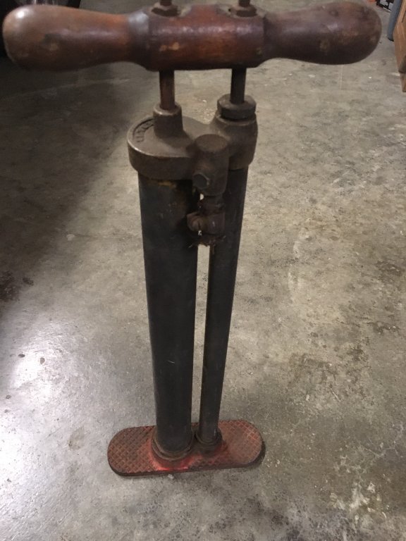 Beautiful original pump, Dave! A & L makes the hoses that appear to be cloth wrapped and suit the high points model A guys. Also, the little hose clamps. Any good model A supply house should have them as they don’t sell retail any longer. OR, an old piece of red acetylene hose would look fine. I don’t know why people want red hose, I doubt they ever had it, but looks neat.