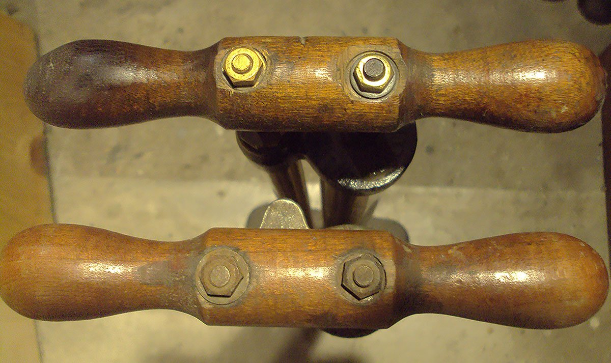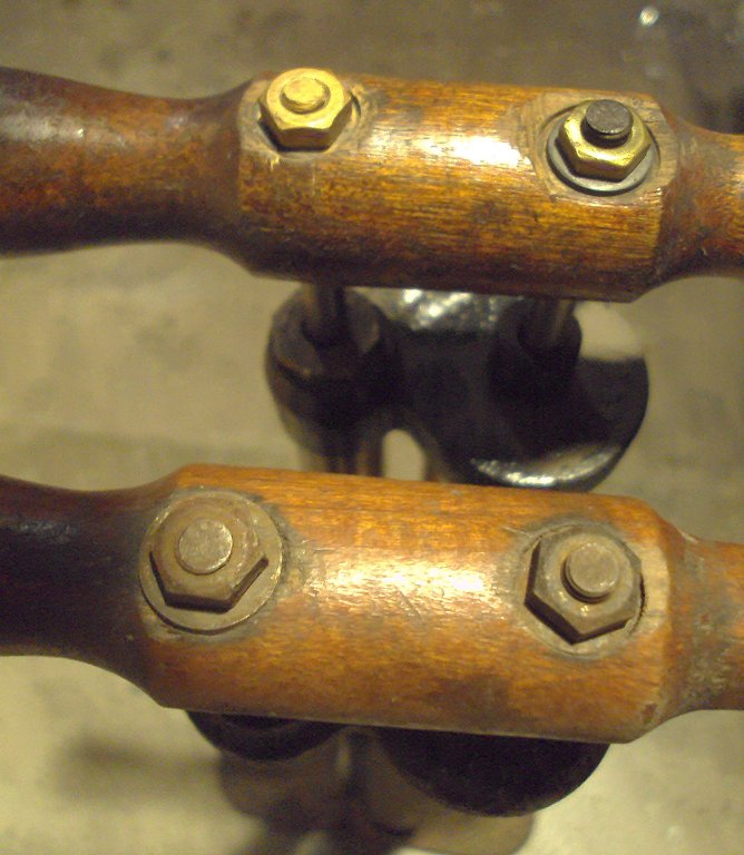 1) Is this handle correct? Are the "divots" where the rod goes through supposed to be there or is it something someone did to get easier access to the nuts? I couldn't find a definitive pic online.
