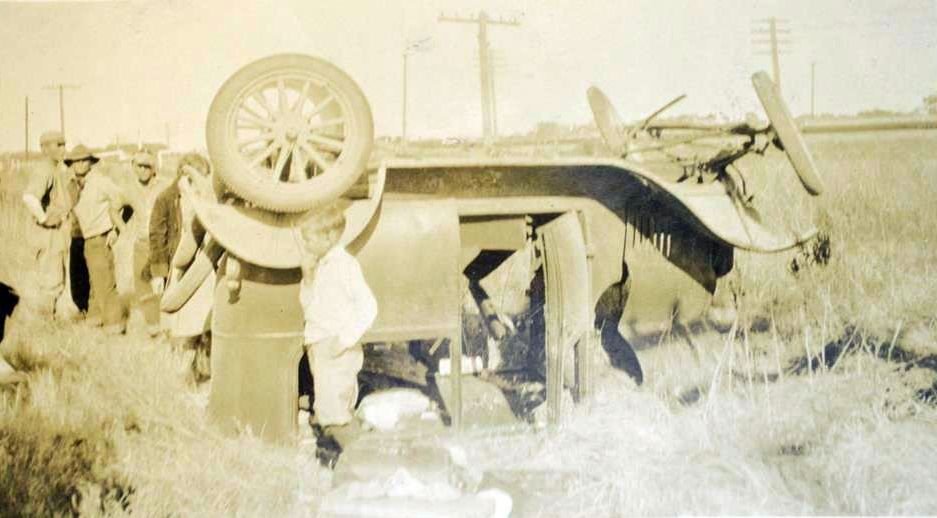 What a ride! you think the young boy was driving? looks like he's thinking of some good excuse