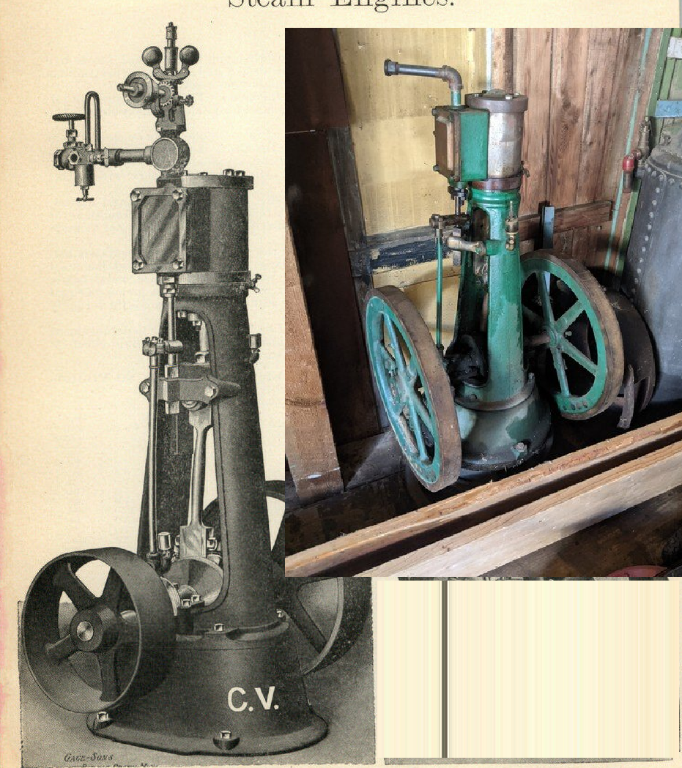 Closest I could find. for "Vertical Steam Engine". There are many similar in shape but none with the same dual fly wheels. These were used in small locomotives, boats etc