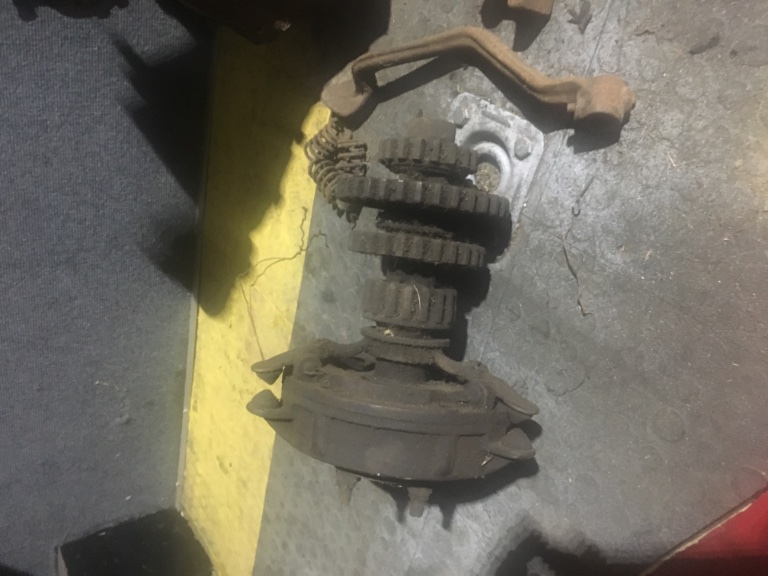 Looks like a cronk simplex. Spelling? The 3 clutch fingers take external springs under those cones. Mine is missing all that external brake drum/band stuff. Ill go look @ it today.
