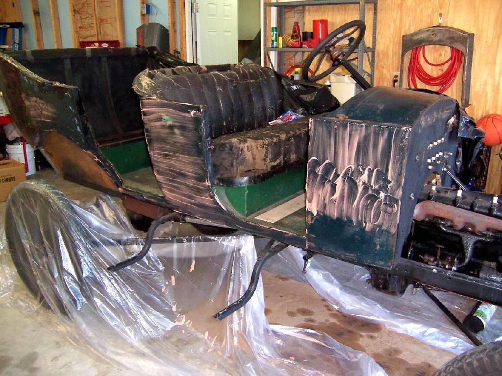 I have finally decided how I am going remove the paint from my coupe. I located a mobile blaster about 40 miles from my son's garage. Today I took the two rear fenders, the two splash panels, two running boards, the rear bumper brackets, the package tray, and hand brake assembly to his shop. He has been in the blast cleaning business for 15 years and has done Model Ts and As. He uses walnut, soda and crushed glass media.