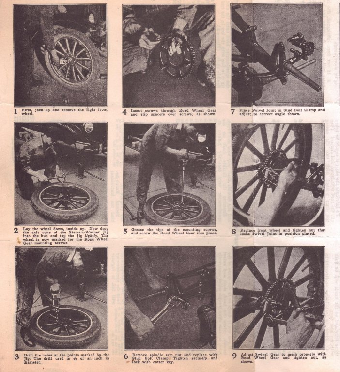 Here is a copy of the installation from the "Stewart Installation Guide". I understand that your car has wire wheels and the road gear is drilled in the spokes for the installation, but you can see how the swivel is mounted to the axle. I hope this helps, Russ Furstnow