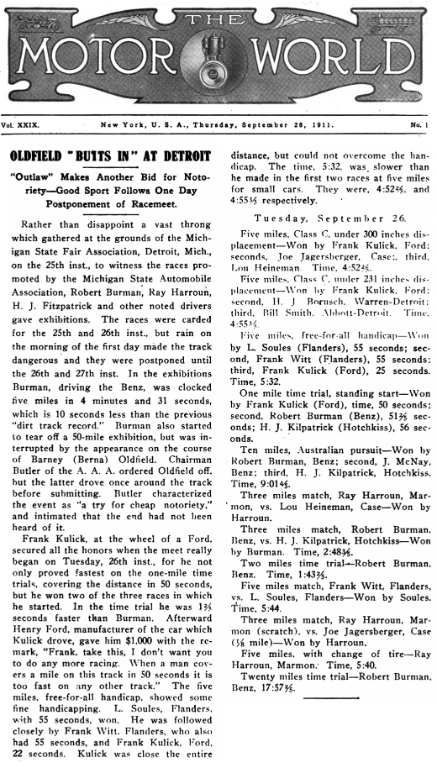 Below, photos from "Motor Age" of Kulick and Jaggersburger: