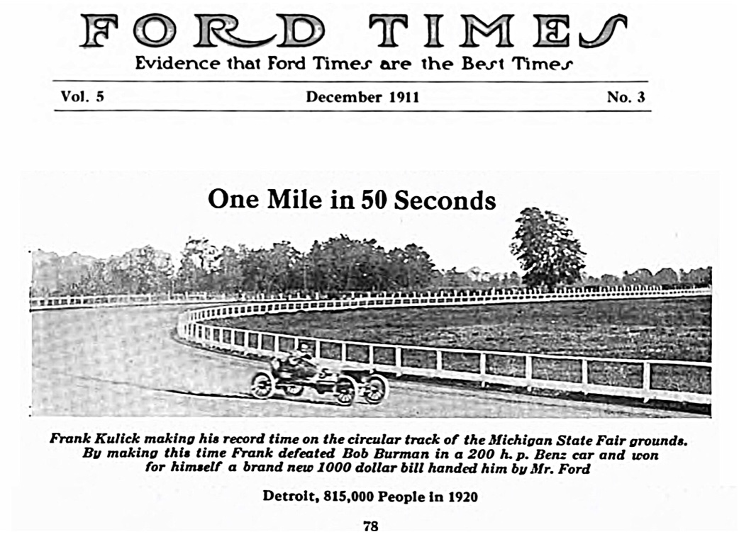 Not a good photo (from the Ford Times), Kulick driving the big Ford for the winning mile time: