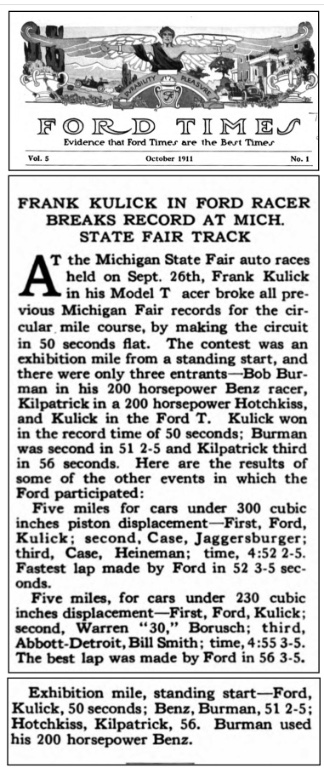 In the first article below, Bob Burman "also drove an exhibition mile in the the Janatzy-Mercedes:"