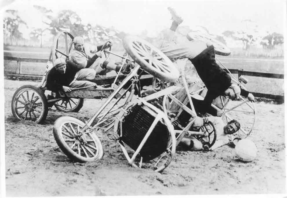 There are quite a number of photos of the cars taken way back in the day. Some of them were cleverly staged with the cars blocked in "action" poses, and "players" leaped from the cars as the photo was taken! Always fun to dissect those pictures. There were also a few film shorts (videos in modern parlance) of actual playing of the games. Many years ago, I got to see one such film short (a "News Reel") on the big screen in a theater that was also showing silent era movies.