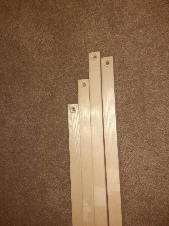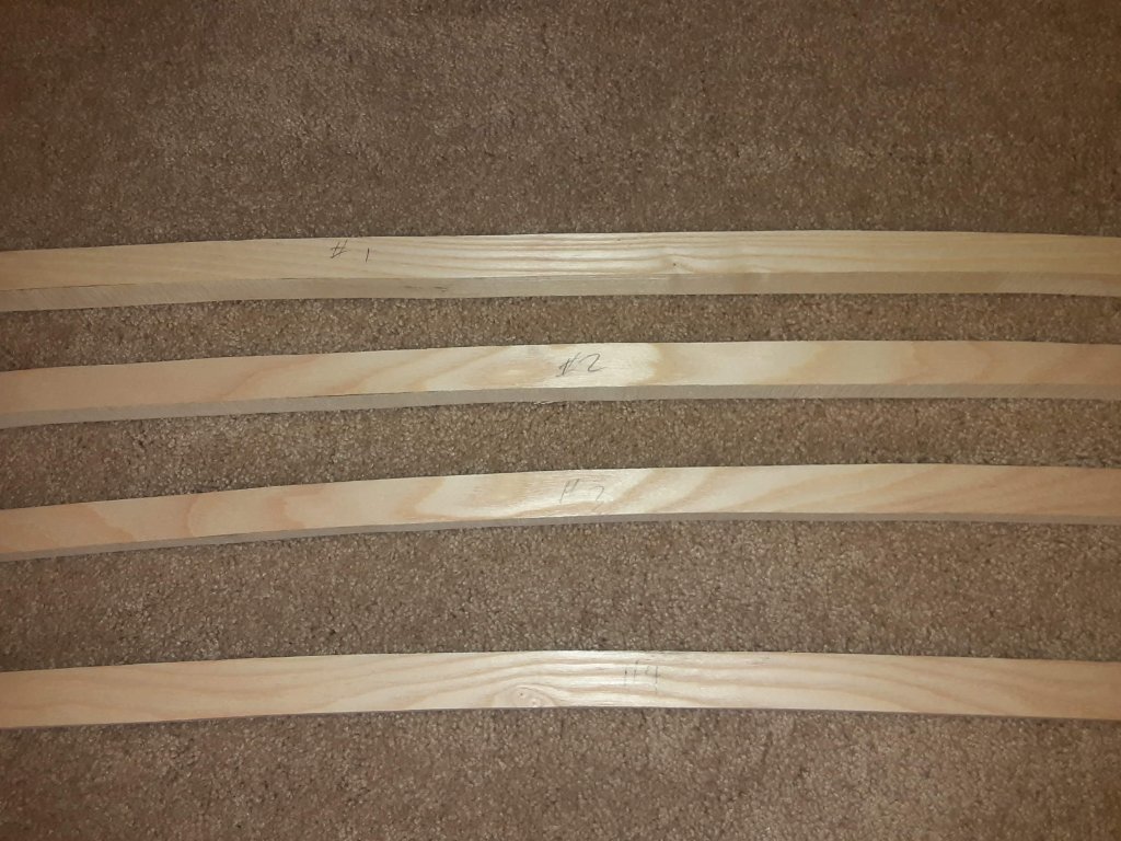 A coupe more photos. The two with the screw driver show splits in the bow. I believe I could repair these by glue and placing two small bolts thru the bow. The splits are in the two center bows. The other two are fine.