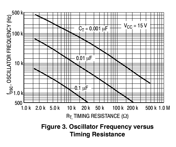 Likewise C3 and R3, which will set the PWM frequency could be anything you have available, within reason. Ideally I think you should keep the frequency between 1kHZ to 10kHZ if possible, here is the chart from the data sheet showing how to attain this: