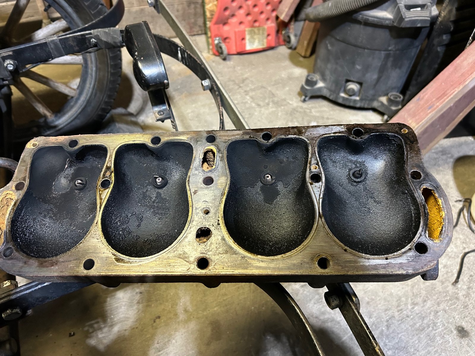 I can't see any evidence of the valves being burnt from the top. It is a shame that I didn't do a compression check before pulling the head. It does burn a little oil, but not enough to thinks it's time for a rebuild. I don't see anything disturbing in the cylinders. The only obvious cracks that I've found were by the front waterjacket and they were welded at some point in the past.Norman Kling wrote: ↑Sat Dec 16, 2023 8:30 pmYour valves look very good. I wouldn't pull them unless the seats and under side of the valve heads look burnt. Just check the clearances to be sure they seating all the way should be around 12tho thousandths between the tappet and valve stem with adjustable lifters.