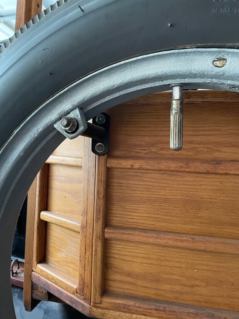 Back in the late 1960's, I had a Depot Hack made from a 1923 touring car chassis. The body, I think was a Syverson body made in Illinois. I don't know if it came with an under body spare tire rack, or whether the previous owner added it, but there was a place under the wooden body in the back that the spare rim and tire, slid into.