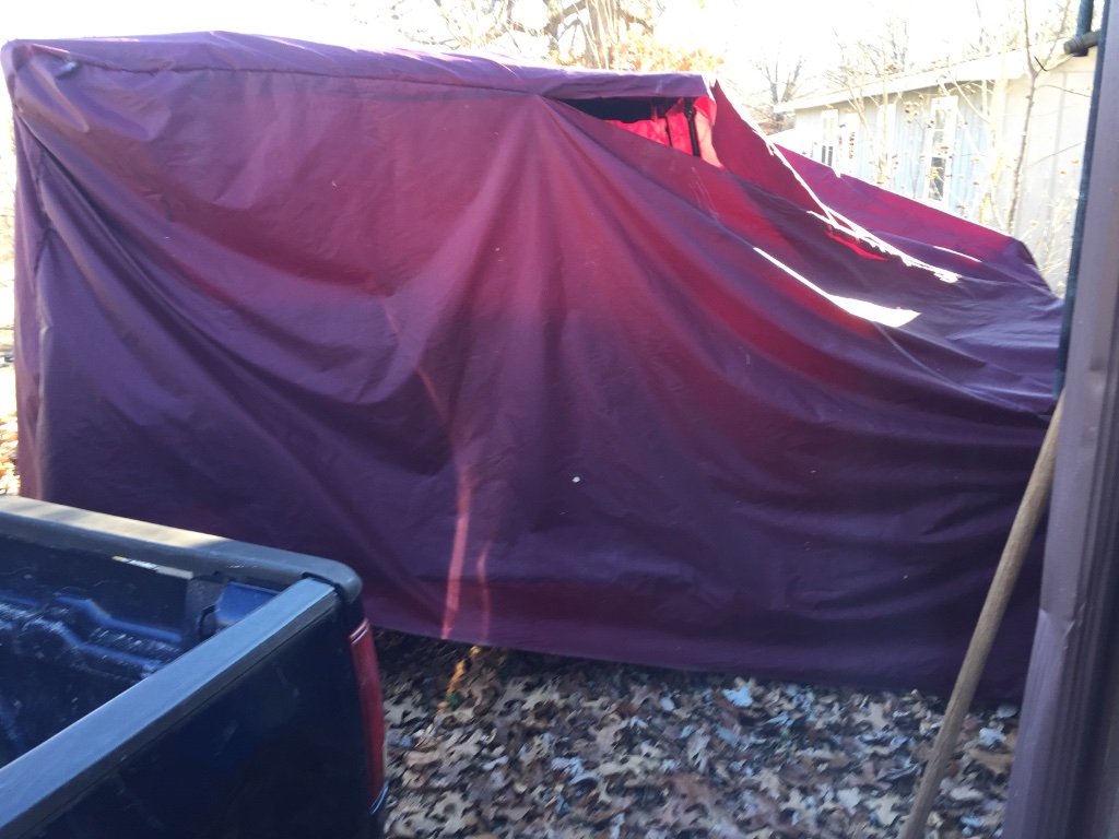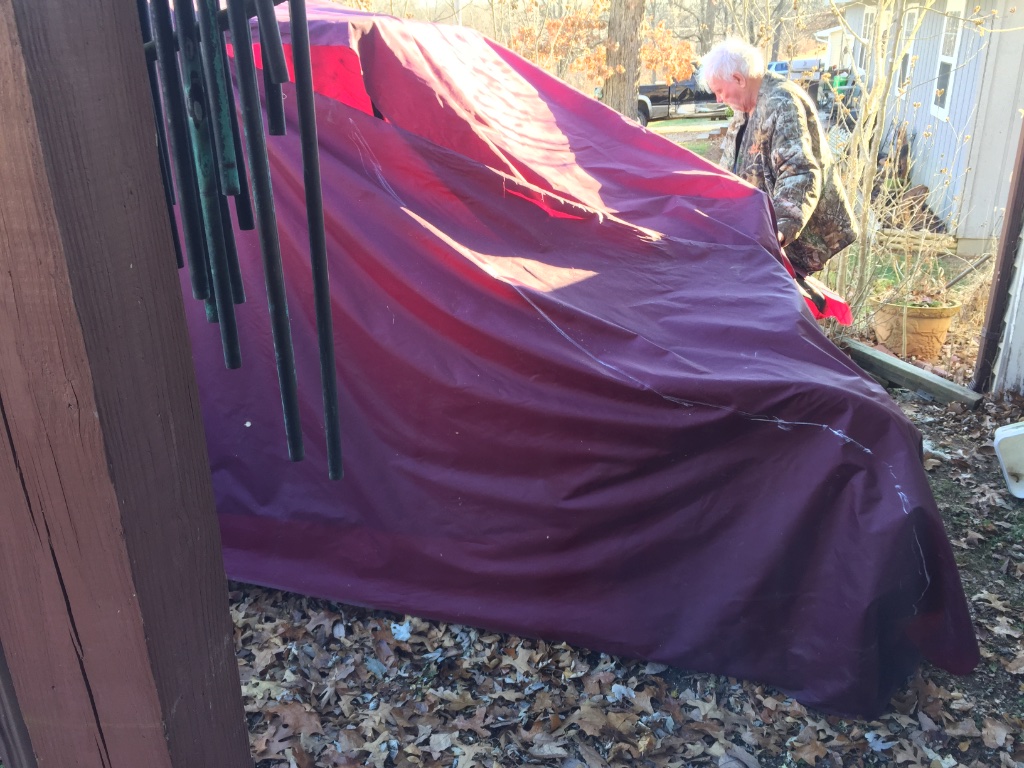 Mailman weather (rain, sleet and snow) is forecast for Kansas tomorrow, so I decided to take advantage of the last 60 degree day for a while and put the 15 runabout up on jacks and drain gas tank for hopefully a short winter nap for it.