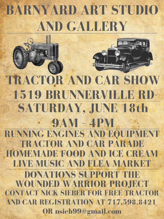 Howdy folks and happy new year!! Here is a really neat show that I am organizing along with my good friends at the Barnyard Art Studio & Gallery in Lititz, PA! It is a one-day event, on Saturday, June 18th, 2022 with free tractor and car registration! We are also accepting vendors for a flea market and will have live music and food! One of the local Brunnerville farmers hosted a show like this one every Father's Day weekend for many years. The local community loved it! Unfortunately, he passed away a few years ago, and the show has been canceled ever since. It is our goal to revive this event, so that it may continue for many more years to come! Please feel free to reach out with any questions! Vendor spaces are limited and are available for $15 each. Donations also support the wounded warrior project! In order to help expedite the process of show registration, and make it as easy as possible for everyone, there is now an online form up and running for this! You can use this form for tractor and car registration, as well as reserving vendor/flea market spots! We already have some great vendors and tractors/cars registered for the show, so reserve a spot while you can!