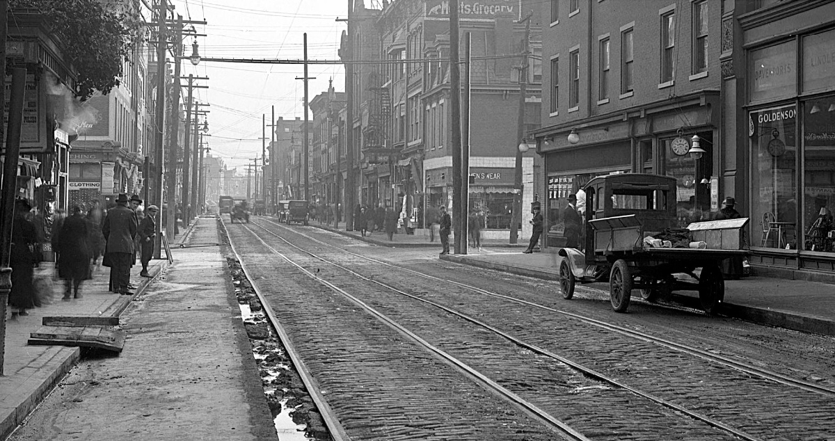 Cobblestones and streetcar tracks. Still had lots of those in Saint John when I was growing up in the 40’s. The cobblestones and some of the tracks remained quite a while after the streetcars were gone. I can clearly remember the rhythmic “rump-rump-rump” of cars driving on the cobblestones past my Dad’s business in the 50's