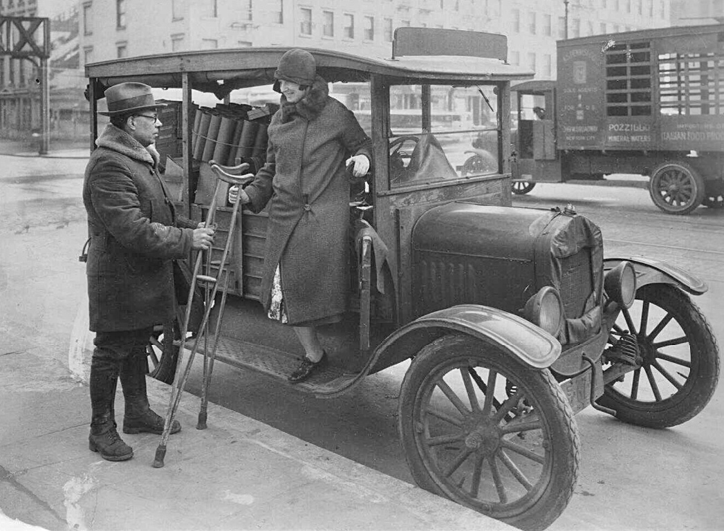 The Crystal Gasoline tanker is a unique combination. It appears to have an ordinary roadster body mounted onto a TT, and that body has an accessory California top. The photo suggests it is a new truck.