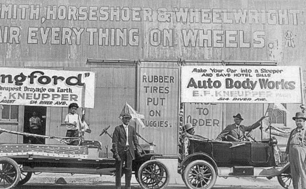 Photo number 11 shows "Auto Body Works" and "EF Kneupper" on the sign. I found this postcard on a Texas history website showing that the photo was taken in San Antonio Texas.