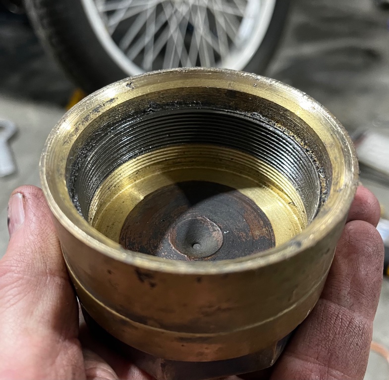 The hub in issue has some damage because the hub nut was half off which created the bare brass visible