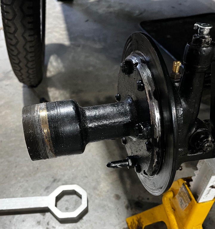 Hey there Will, interesting that your nearly unidentifiable rear wheels were converted to bolt on type, and your equally unidentifiable wheels (of a different make) were retained as knock off. The front hubs and caps smell homemade, and so every detail should be checked for proper function.