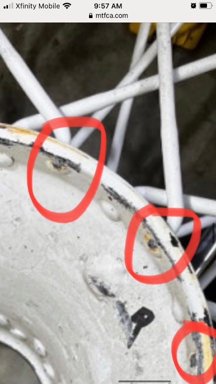 Note differences in rim shape and valve stems... and spoke weights Front vs Rear (with lead weights)
