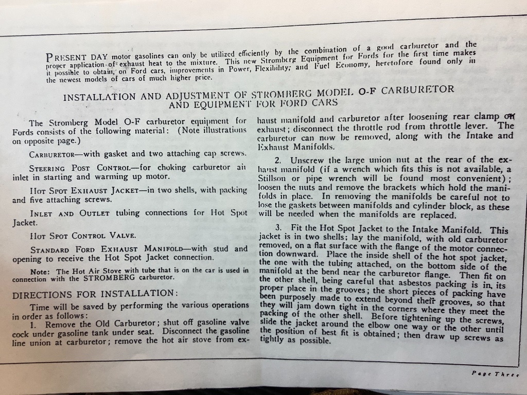 I’ll start this for hints on rebuilding your Stromberg OF carb. PLEASE JUMP IN if you have any hints or advice. I’ve often advocated that these are very simple carbs. If you can take apart a simple lawnmower carb, these are a piece of cake. If you haven’t, there isn’t much to them and I’d encourage you to get your hands dirty. Nothing better than a sense of accomplishment with model T ownership.
