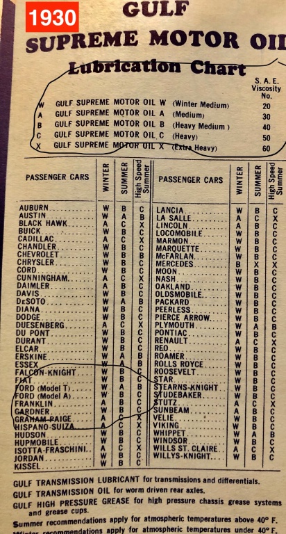 This is a "Not Again Question" - suggest you use this Google search to see all the hundreds of previous, Historical, Personal and scientific responses. https://www.google.com/search?client=fi ... +oil+MTFCAcmauro13 wrote: ↑Thu Feb 17, 2022 11:38 amI have a 1924 Model T and I need to change the oil. I looked up what grade of oil to use and got a few different answers online. I am in NJ and will typically drive when it is warmer 40+ Degrees so it sounds 5W-30 should be sufficient, but I just want to make sure. Thanks for your help!