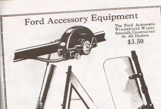 John , having owned several originals, they are made by Trico, but not common at all. One of the very hardest to find late model T accessories. They are close to the regular Trico wiper, but just about nothing is interchangeable, other than the wiper arm. The actual ford supplied units have a round etched disc with the Ford logo on it. Two different models, one for open cars and one for closed cars. They were made from bad potmetal, so very hard to find one that isn’t warped and cracked. The arms for them are made as a perfect reproduction by A & L . They supply mostly model A very high quality reproduction parts, wholesale only. Hope this is some help. Good luck on the search, that is half the fun.