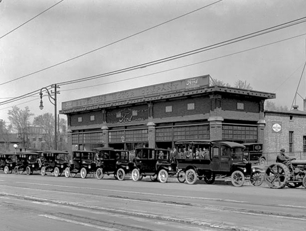 Seventeenth photo, difficult to read, but appears to be "BEVERIDGE MOTOR COMPANY", a Ford dealership.